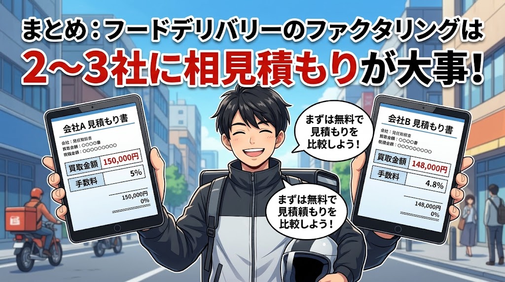 まとめ:フードデリバリーのファクタリングは相見積りが大事